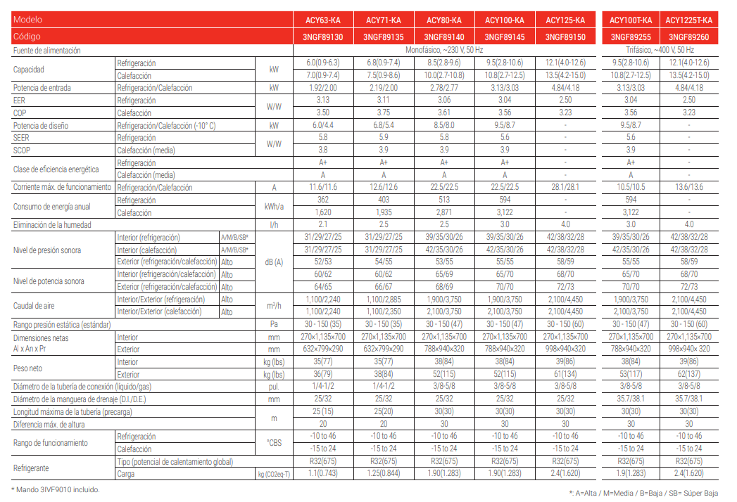 - Nivel sonoro (Unidad exterior) db(A)