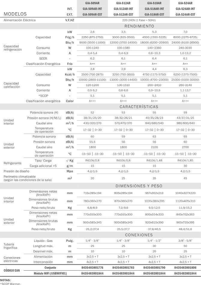 Su pedido incluye la unidad interior GIA-S18AR2-R32-I+ unidad exterior GIA-S18AR2-R32-O + mando a distancia